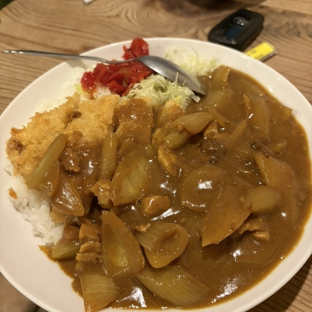 じっくり煮込まれた肉がゴロゴロ入ったルーに、サクサクの衣を纏ったカツはジューシーで、ボリューム満点です。まさに肉屋のカレーと言えるほどの完成度で、これぞ絶品と言える味わいです。