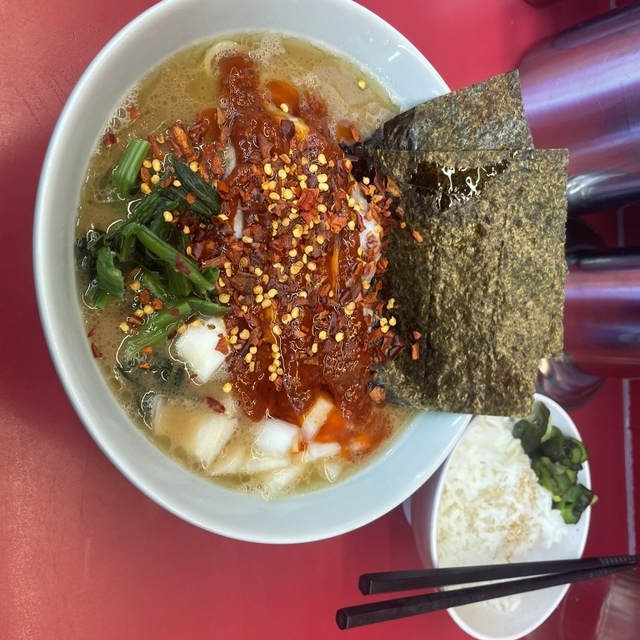 濃厚な豚骨スープで岩のりたっぷりで風味が良く、中太ストレート麺と良く合い美味しいです♪おすすめの青葱もまた、味が締まり素晴らしいアクセントになって美味しいです。チャーシューは1枚で大きく柔らかいです。得意のご飯にチャーシューを乗せスープをかけてのりで巻いて頂きますと最高です‼️