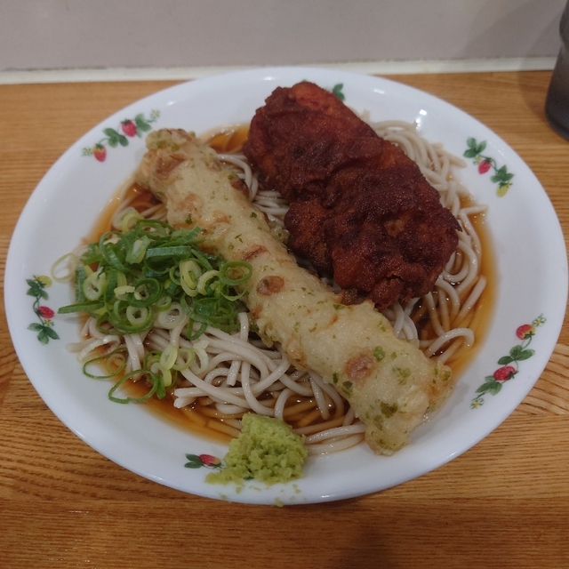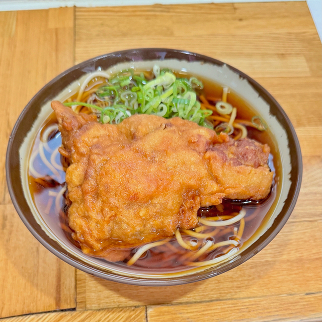 デカい唐揚げは目を引きます。早速いただきますと唐揚げの重量感にびっくり、食べると更に衣がサクサク?ザクザクなのに中はジューシーで食べ応え抜群です。あまりの見た目にそばの写真を撮るのを忘れてしまった!